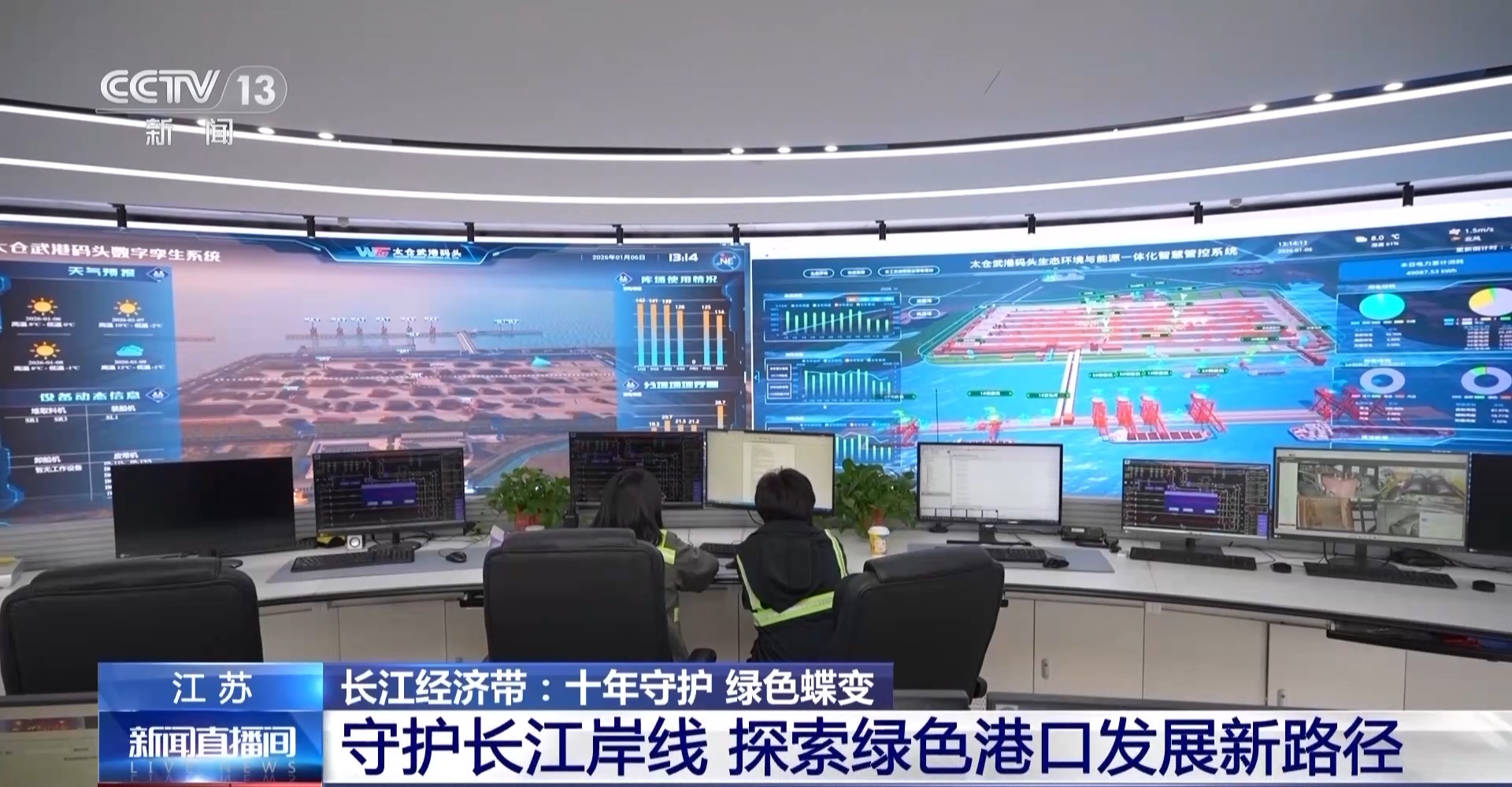 在太仓港武港码头的智能调度控制中心,电子大屏上,通过数字孪生1∶1还原了全套码头运行体系,线上和线下、虚拟和现实相结合,实现了对码头作业的全流程管控。将过去的由人工响应向智能干预升级,实现了从预警到处置的闭环管理。得益于这些举措,码头在前不久也成为全国首个获评五星级绿色港口的铁矿石码头。