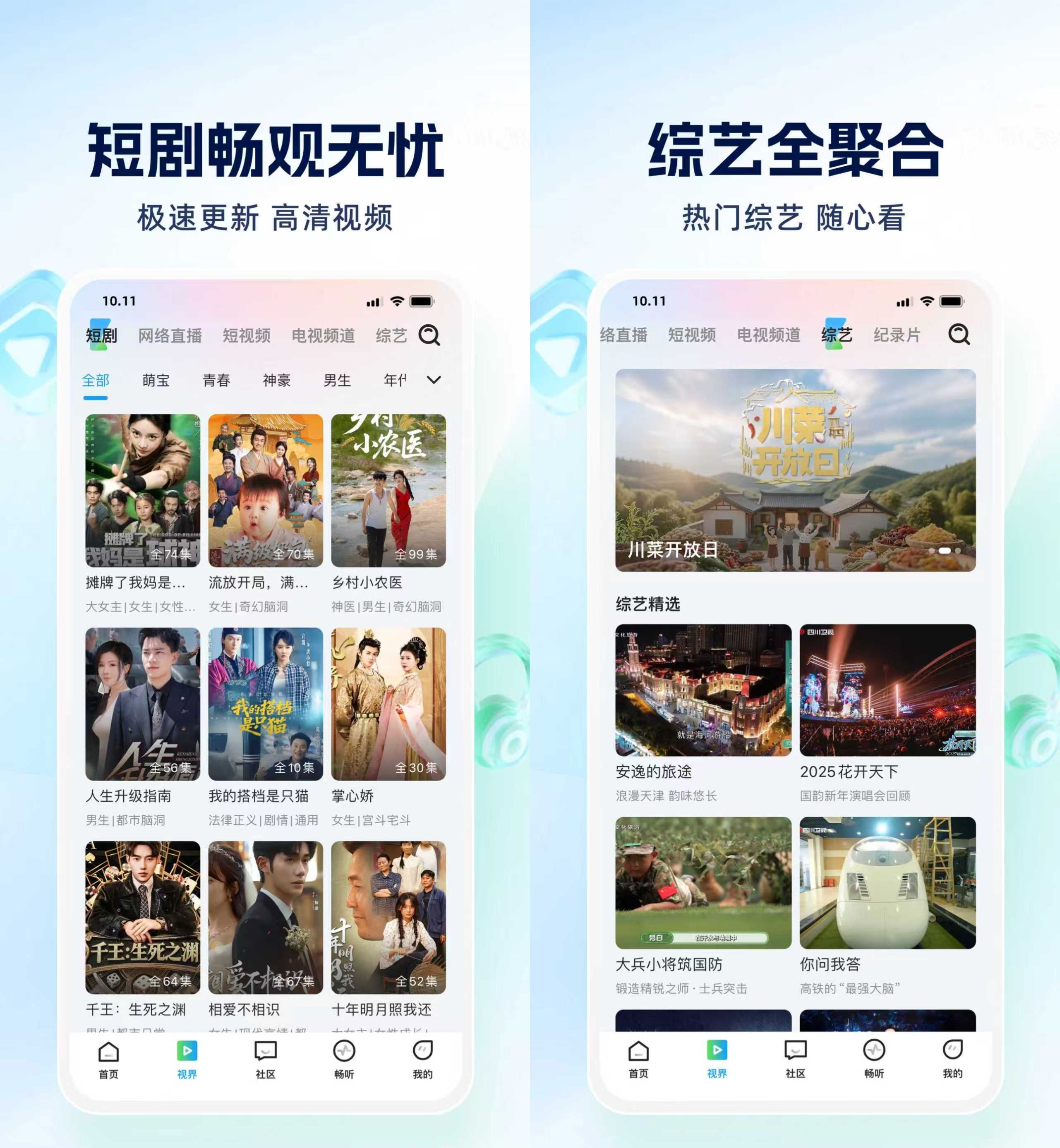 视界聚焦短剧、直播、综艺等视频内容,提供一站式视频内容聚合与消费场景。