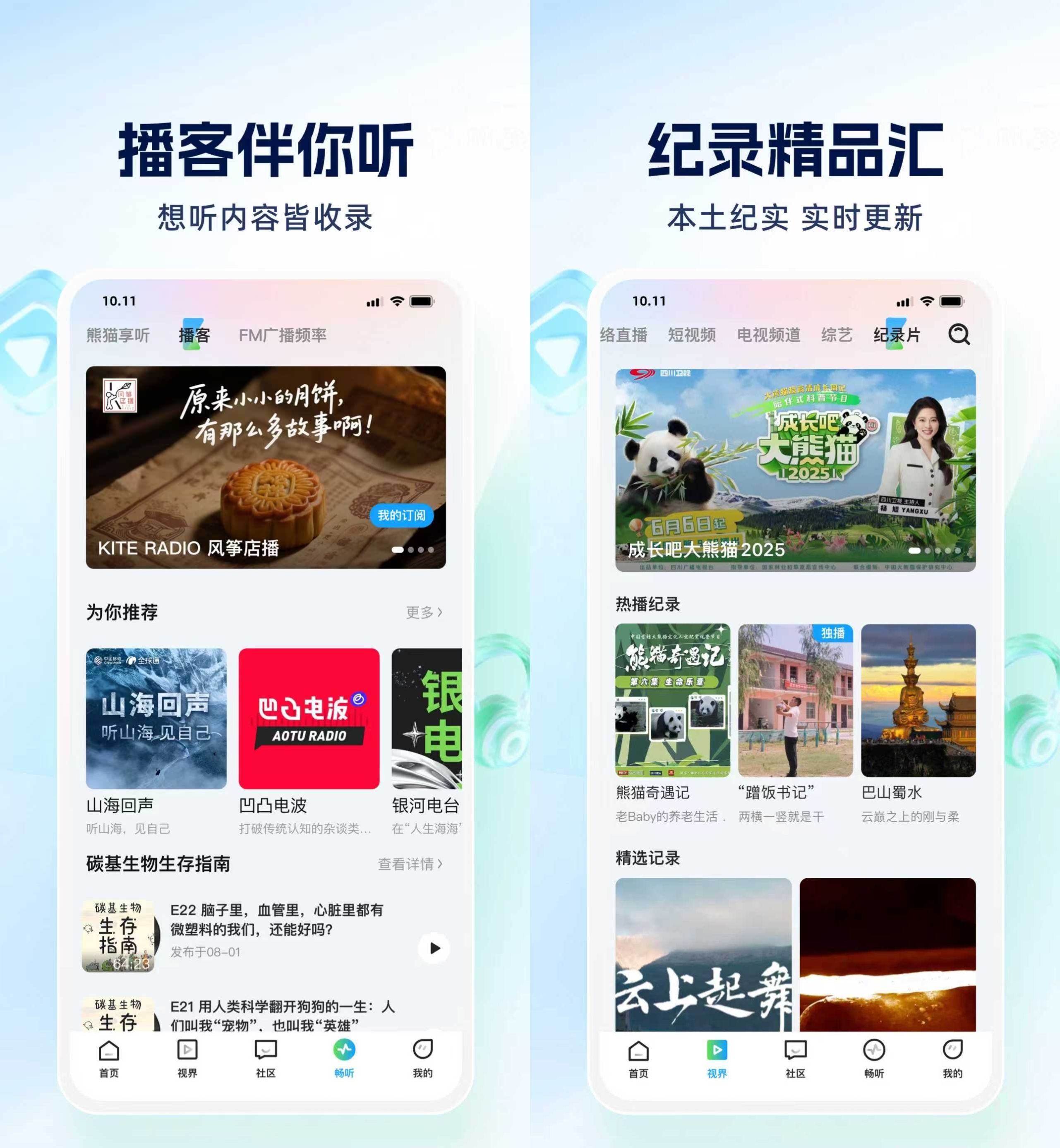 畅听集成播客与“熊猫享听”音频,打造高品质听觉空间。
