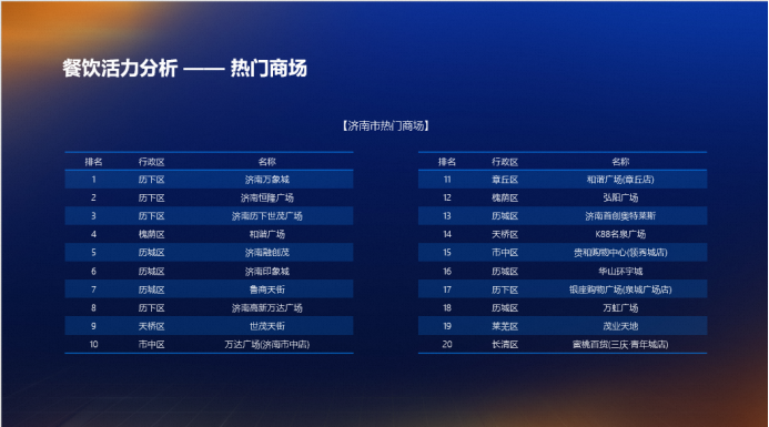 从区域分布看,历下区、历城区、槐荫区稳居前三甲,成为济南烟火气最浓的三大核心板块。其中,历下区凭借深厚的历史底蕴与成熟的商圈配套,持续领跑;而历城区则以迅猛增长势头,成为新兴商业力量的重要承载地。