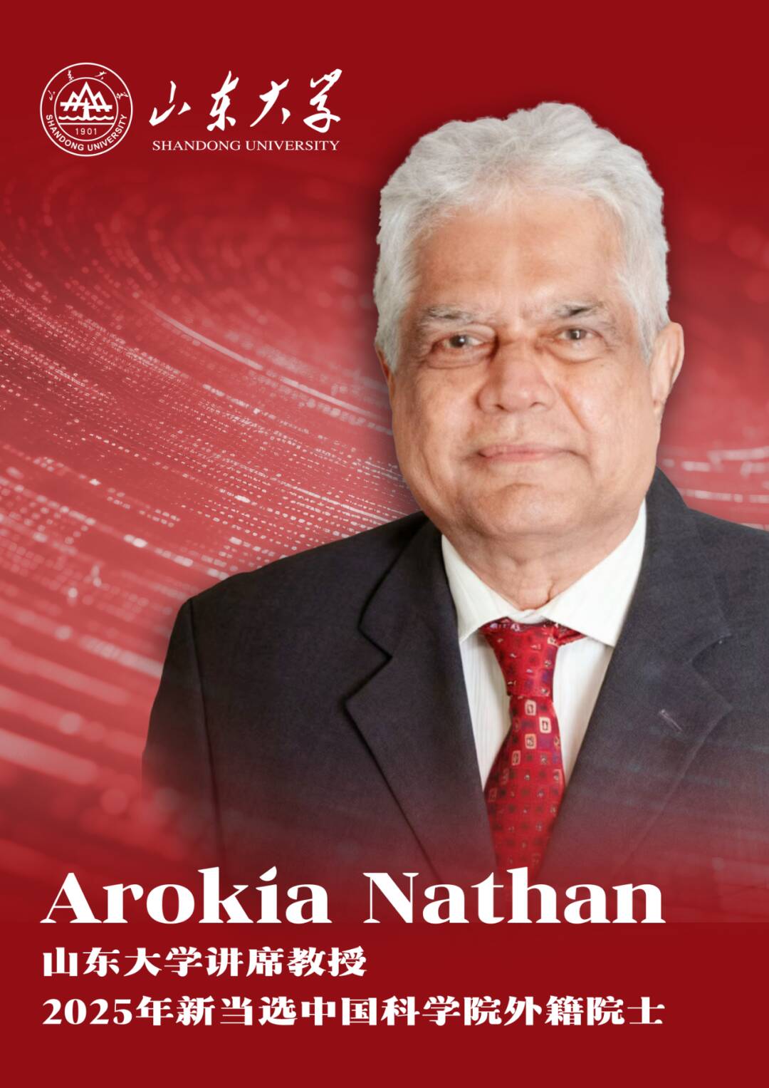 Arokia Nathan,山东大学讲席教授、国家级海外高层级领军人才、英国皇家工程院院士、加拿大工程院院士。主要从事纳米光电材料及器件、新型光电显示技术和新型TFT薄膜晶体管的应用研究,在低温薄膜器件的制备及其与柔性基板的集成、薄膜晶体管TFT在OLED和阵列式生物传感器芯片等方面取得了一批重要的研究成果。首创氢稀释纳米晶硅生长与栅极脉冲调控技术,有效提升晶体管性能;发明原位信号增强像素与纳米线光电器件,实现高分辨率低剂量生物成像;提出深亚阈值低功耗体系,奠定了生物电子学基础。先后荣获加拿大NSERC Steacie奖、英国皇家学会沃尔夫森研究功勋奖、IEEE J.J. Ebers Award、中国政府友谊奖等重要荣誉。