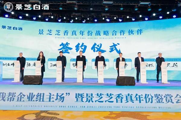 用美酒的最高礼遇,寄托美好,传递祝福,双向赋能,共赢未来——作为“我帮企业组主场”活动之一,现场进行了景芝芝香真年份产品战略合作伙伴签约仪式和封坛仪式。在现场嘉宾的见证下,景芝白酒党委书记、总经理干晓峰同七家潍坊不同行业的龙头企业签署战略合作协议,共同开启一段共赴未来的崭新旅程。随后,签约嘉宾进行了隆重的芝香封坛仪式,通过一坛坛芝香原浆封坛酒,感受到了景芝传承千年的古法酿造,精雕细琢的妙手匠心,以及景芝白酒引领鲁酒振兴和芝香产业大发展的美好蓝图。
