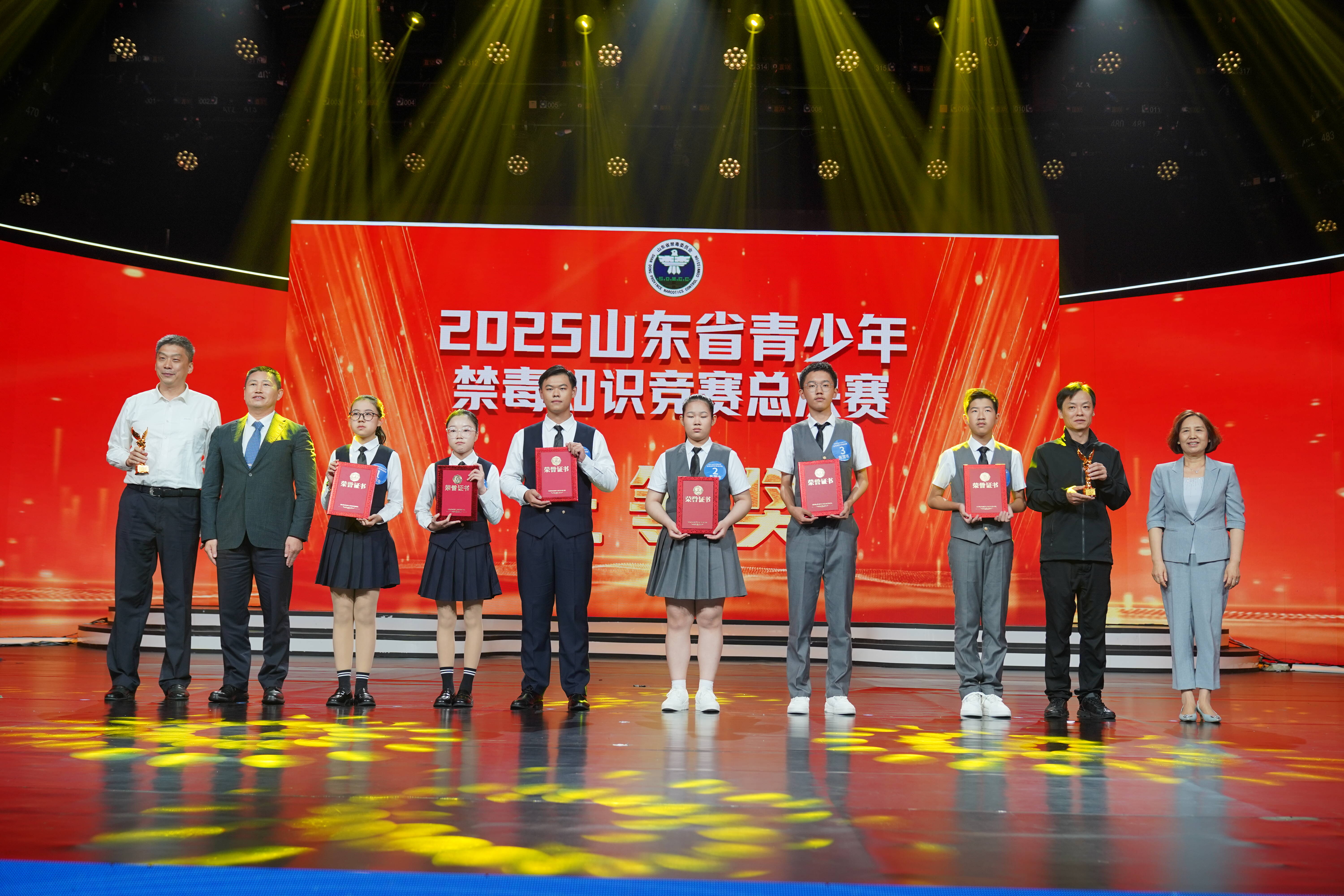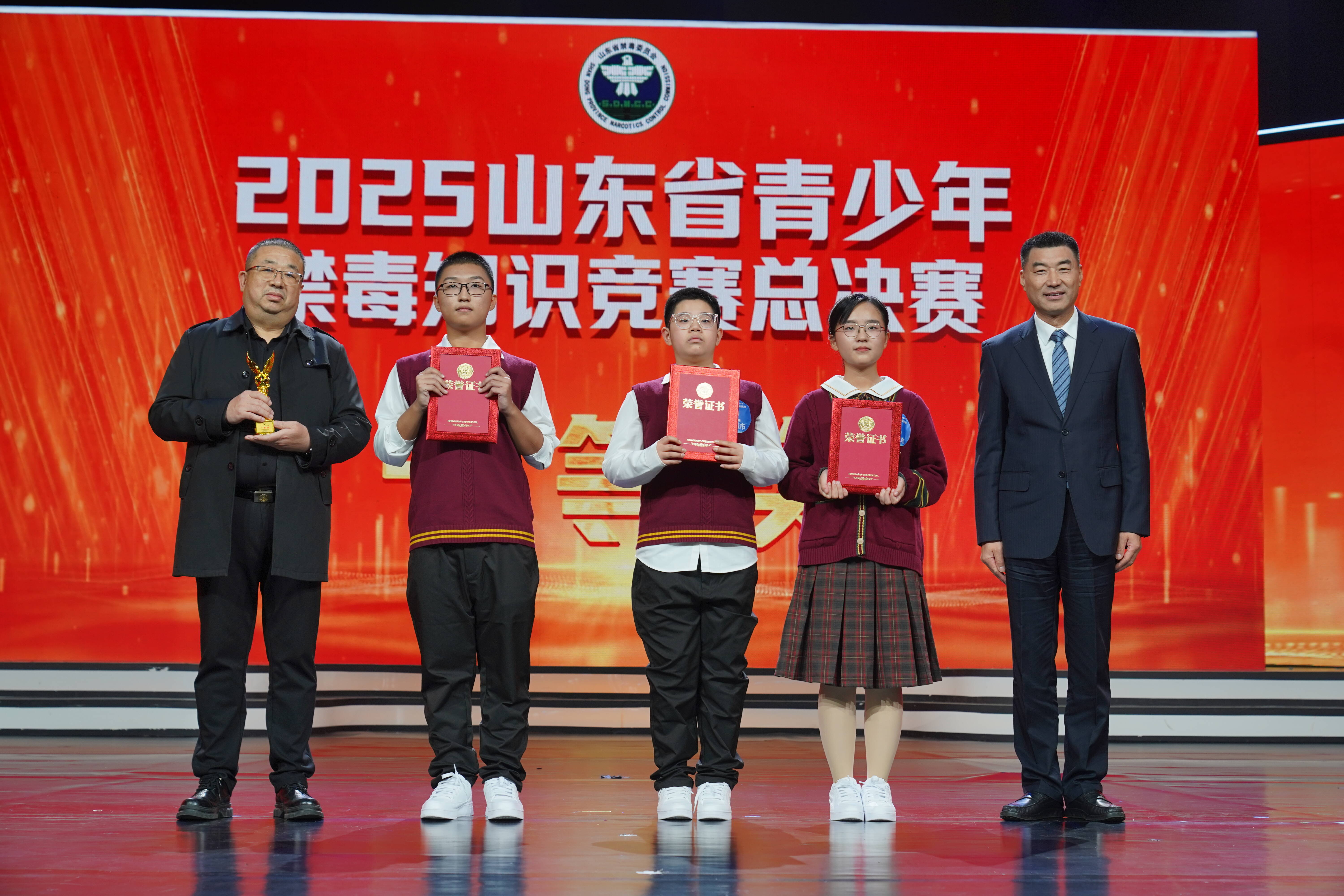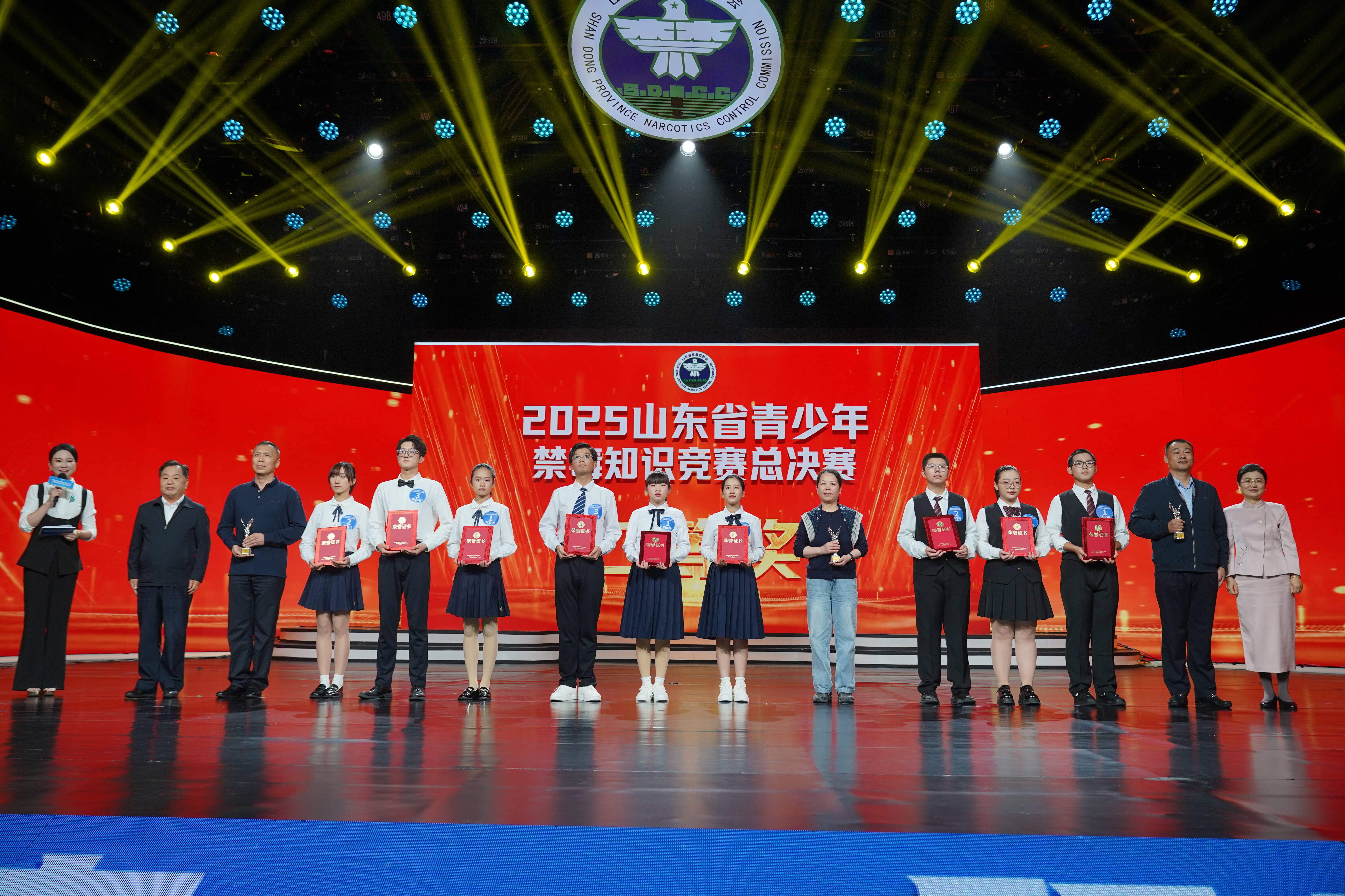 为深入贯彻落实习近平总书记关于加强禁毒工作重要指示精神,深化全省青少年毒品预防教育,巩固学校毒品预防教育成果,10月11日,由省禁毒办、省教育厅、省广播电视台主办,济南市禁毒办、济南市教育局承办的2025年全省青少年禁毒知识竞赛总决赛在济南举办。省禁毒委副主任、省公安厅副厅长、一级巡视员戚思宇、省广播电视台党委委员、副台长孙珊、省教育厅二级巡视员侯典明现场观看总决赛,并为获奖队伍颁奖。