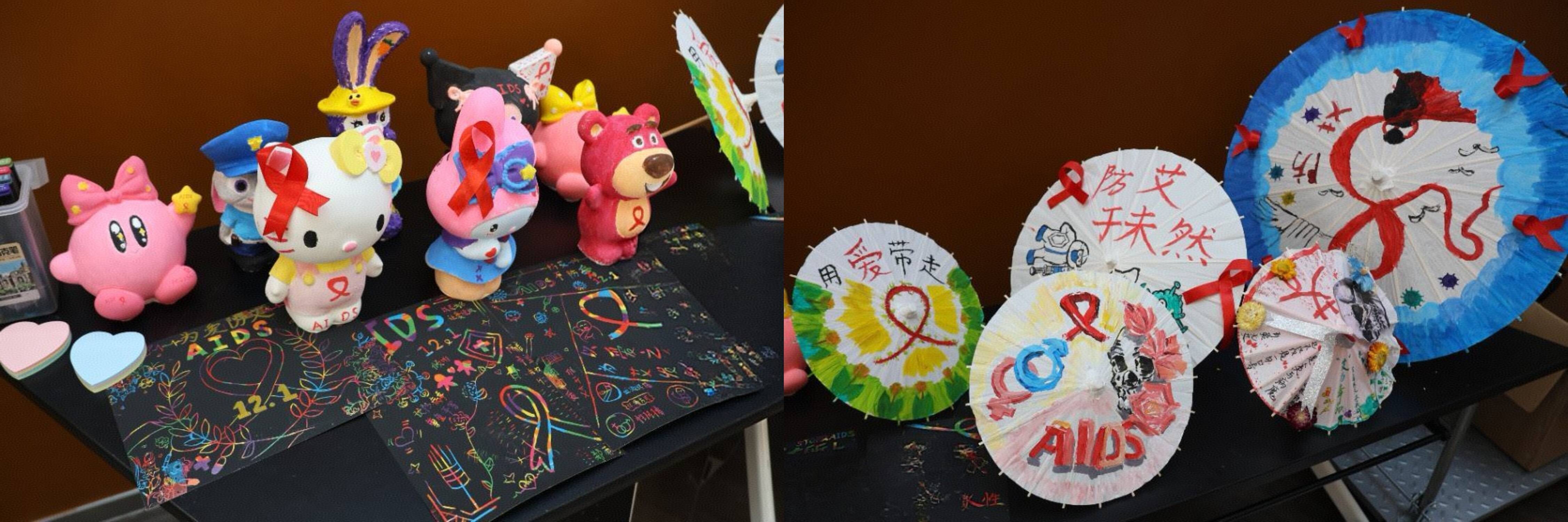 活动伊始,观众们走进“红丝带艺术长廊”参观防艾主题作品展,涵盖漫画、手绘海报、防艾油纸伞、瓷娃娃等多种原创作品,成为直观生动的“防艾教科书”。防艾志愿者现场发放防艾宣传单页、红丝带胸针,鼓励学生在便利贴上留下温暖话语,在防艾展板上许下美好祝福,让防艾宣传从“单向传递”升级为“情感共鸣”。