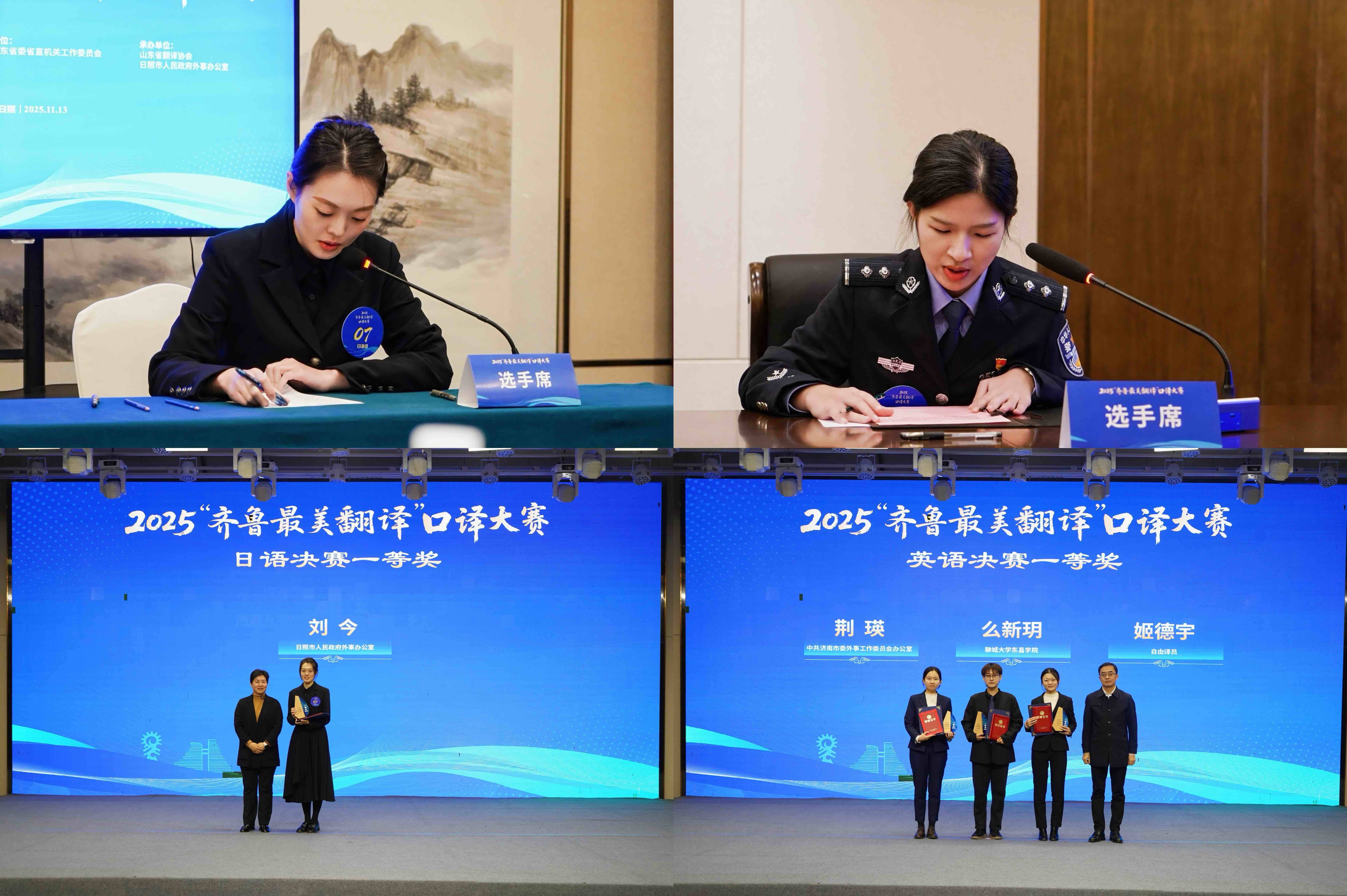 齐鲁网·闪电新闻11月14日讯 11月13日,2025“齐鲁最美翻译”口译大赛在日照落下帷幕。本次大赛由中共山东省委外事工作委员会办公室、日照市人民政府主办,中共山东省委省直机关工作委员会支持,日照市人民政府外事办公室、山东省翻译协会承办。省委外办副主任李红、日照市副市长刘祥龙、日照市相关部门负责人出席大赛颁奖仪式。