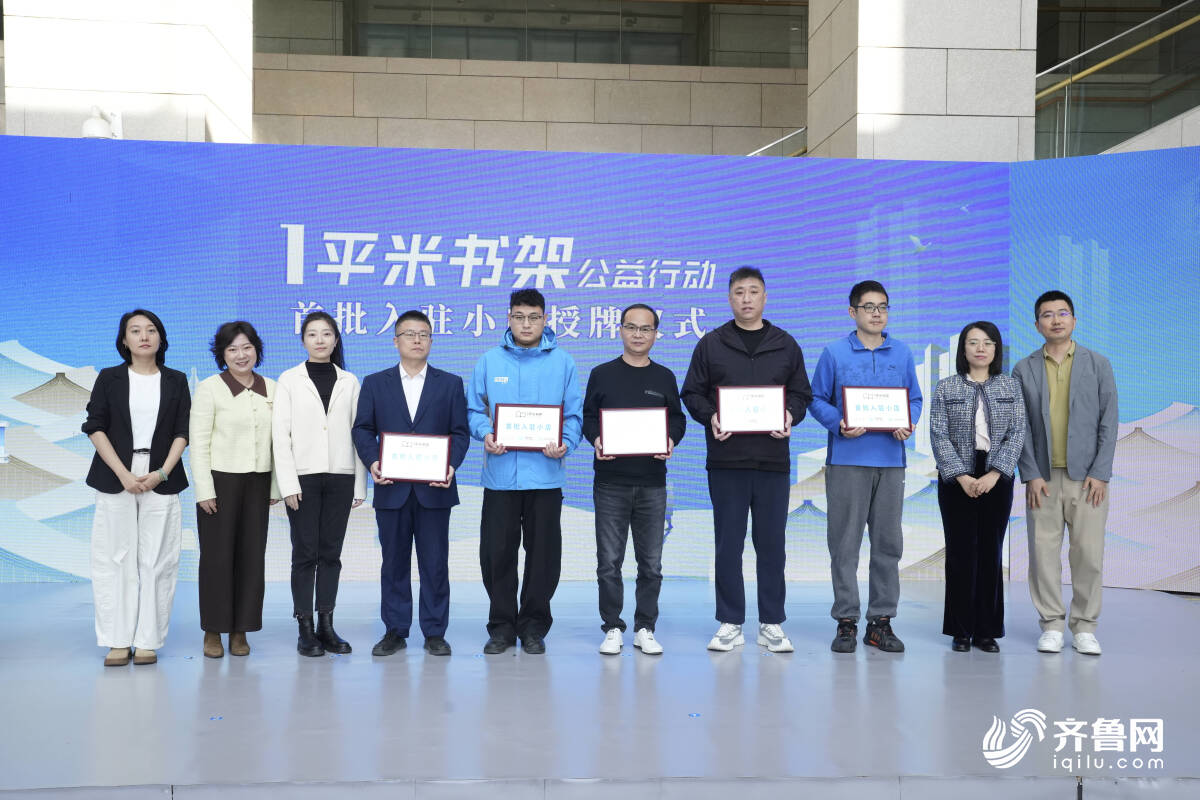 启动现场举行了首批入驻小店授牌仪式,得益乳业济南连锁销售公司、山东阿水信息科技有限公司、来座1957茶餐厅、莎蔓莉莎总店、济南杨铭宇餐饮管理有限公司等企业代表上台,这些企业分布在街头巷尾的小店将成为微小单元公共图书馆,正式进入山东市民生活。
