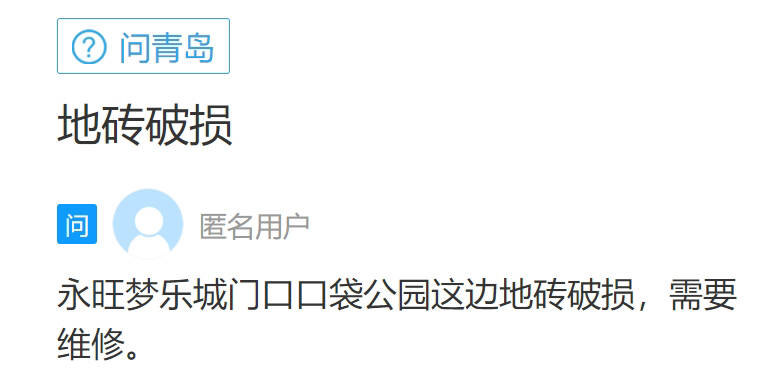 齐鲁网·闪电新闻11月21日讯 青岛的一位网友在闪电新闻网络问政平台留言:永旺梦乐城门口口袋公园这边地砖破损,需要维修。