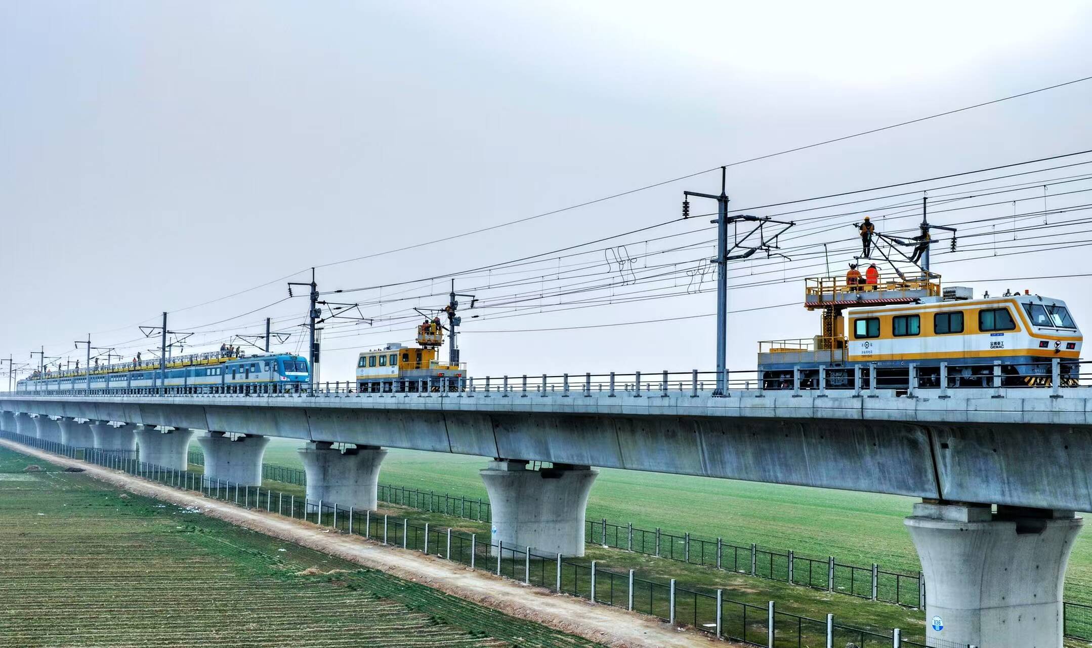 齐鲁网·闪电新闻2月1日讯 雄商高铁山东段眼下已经进入建设关键阶段。今天在菏泽,一列被誉为“陆地航母”的接触网检修列正式投入作业,标志着雄商高铁山东段正式开始静态验收,向今年开通稳步推进。