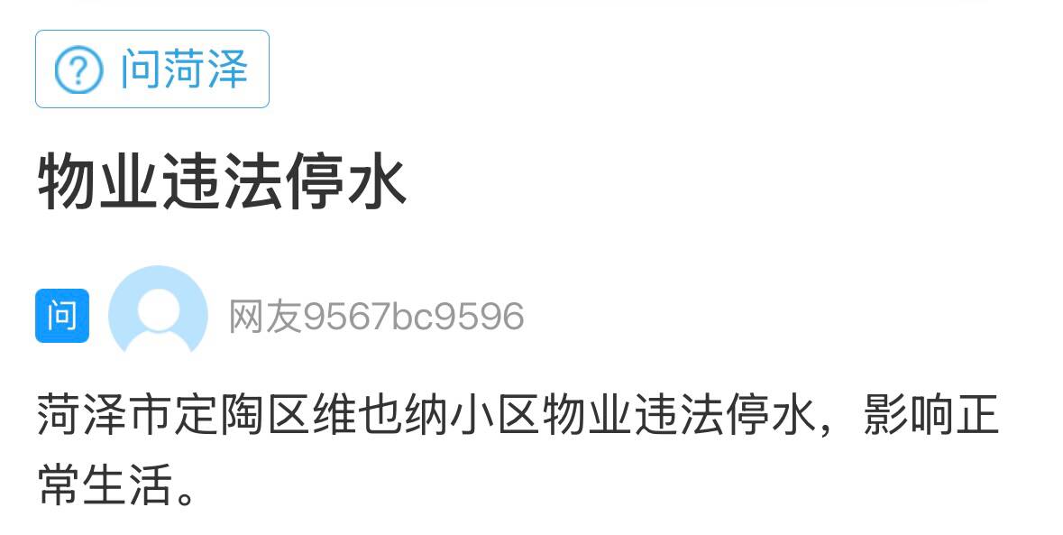 齐鲁网·闪电新闻2月28日讯 菏泽的一位网友在闪电新闻网络问政平台留言说:菏泽市定陶区维也纳小区物业私自停水,影响正常生活。