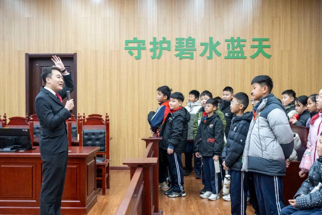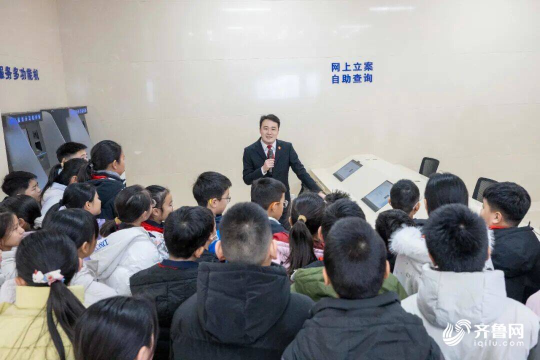 宣誓仪式结束后,槐荫区医学中心实验学校师生代表和媒体记者等50余人走进法院,“零距离”了解法院工作、感受司法权威。在讲解员的带领下,大家先后参观了环资审判展厅、诉讼服务中心、铁路文化长廊等场所,现场倾听了法庭功能、网上立案、典型案例等情况介绍,并观看了防止校园欺凌的法治教育片。通过“沉浸式”体验司法,“面对面”开展授课,大家不仅深深地感受到司法审判工作的庄严和神圣,更在心中播下了尊崇宪法、信仰法治的种子。